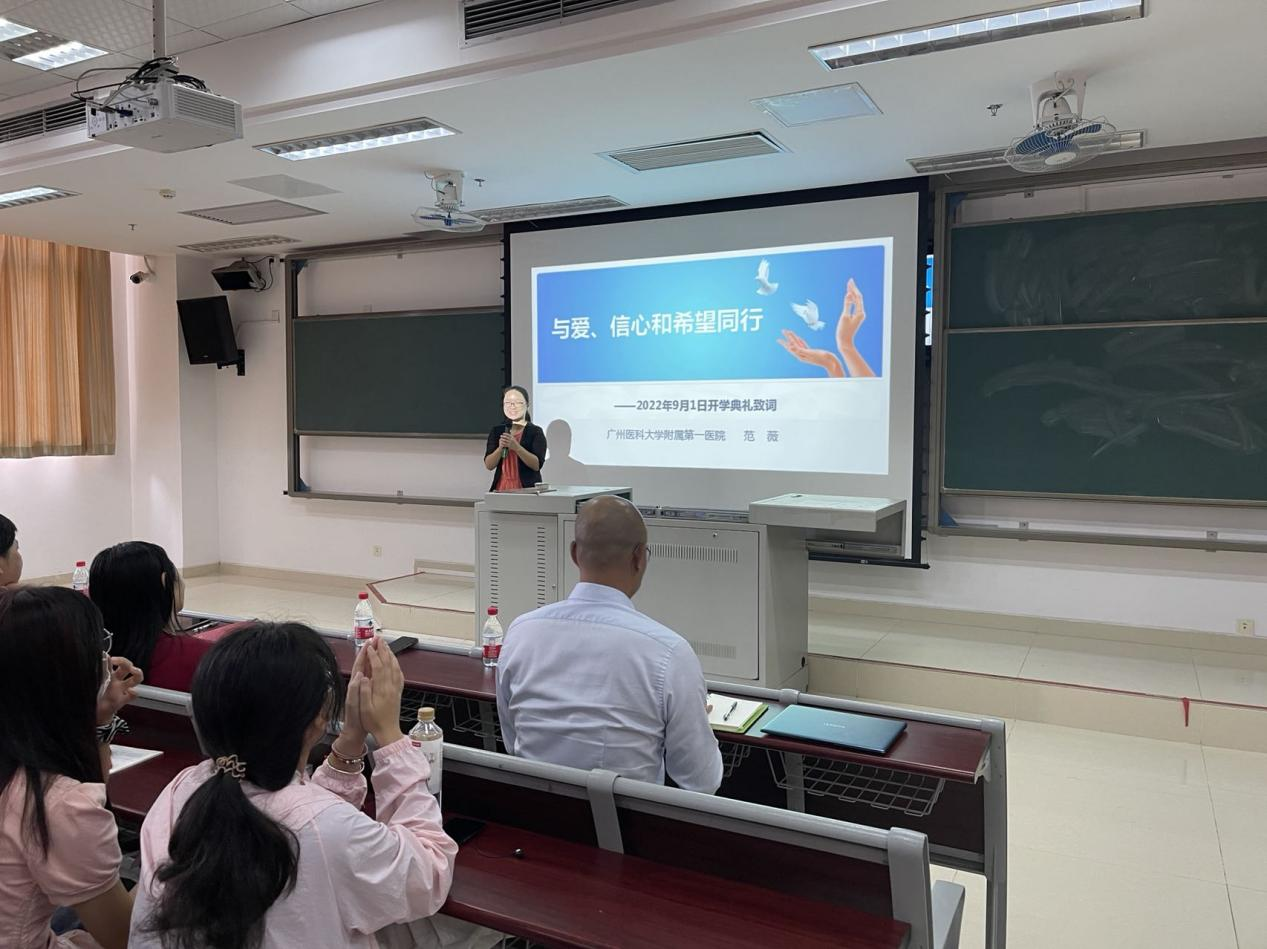 随后,黄美凌副院长结合自己的临床护理工作经历给新生介绍护理学专业,并对同学们提出两点要求。一是要自律、诚信,循序渐进学习,切勿投机取巧。二是要奋发向上,熟练掌握护理基础操作,对病人要有人文关怀,成为一名有温度的白衣天使。
