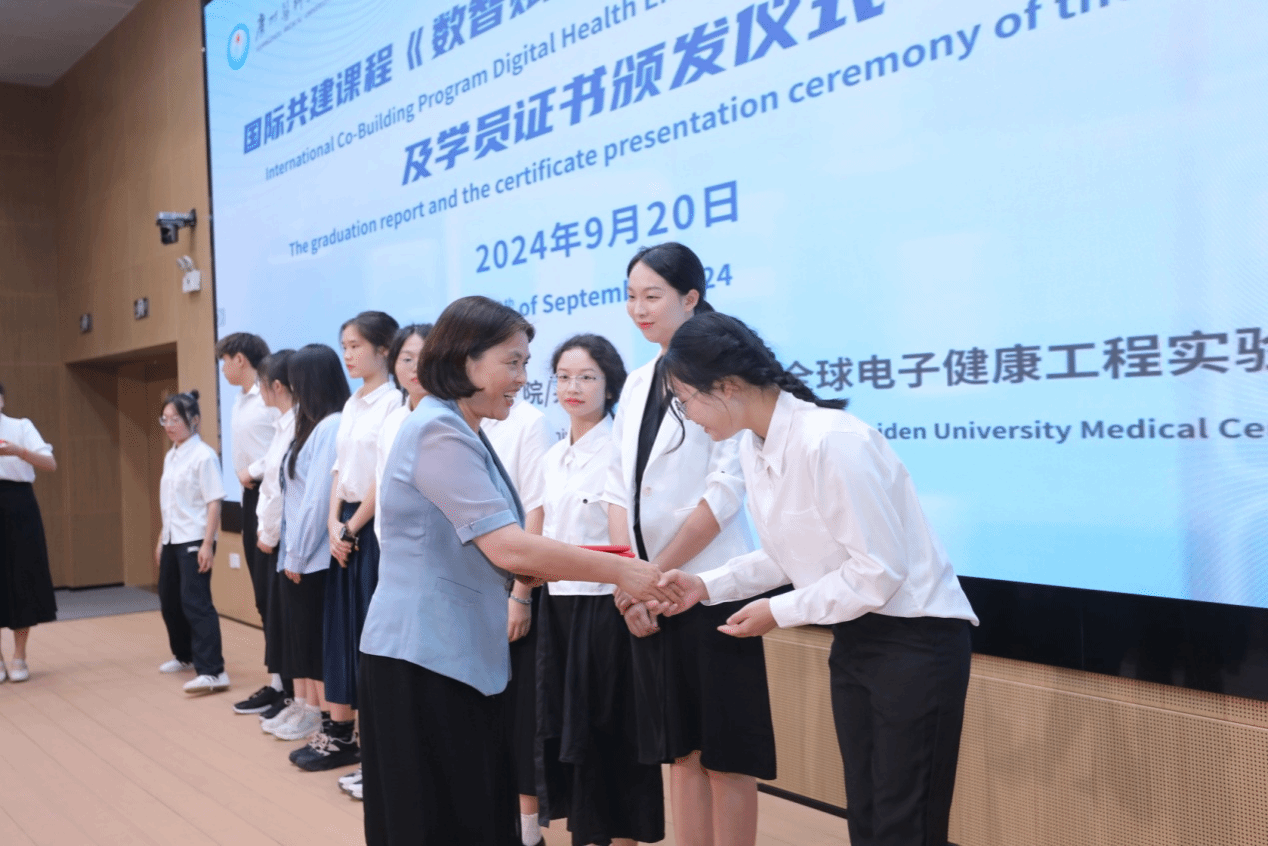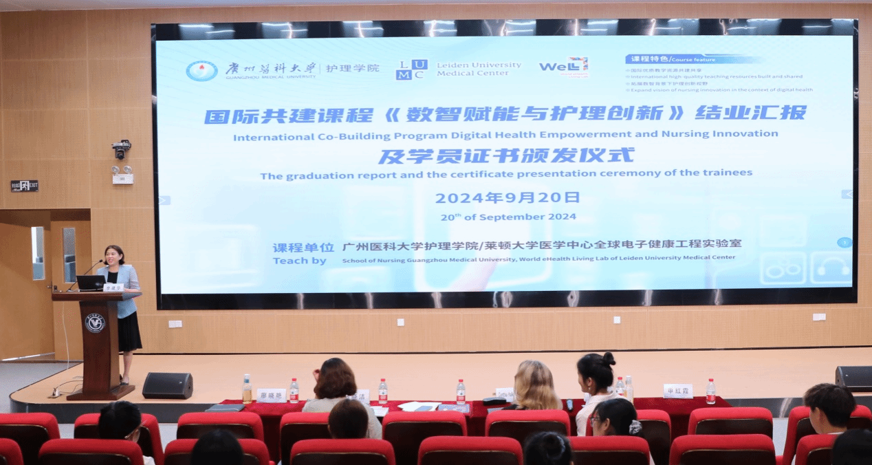 2024年7月22日-9月20日,p站视频 与荷兰莱顿大学医学中心全球电子健康工程实验室共同开展了国际课程《数智赋能与护理创新》。来自p站视频 、澳门镜湖p站视频 、香港都会大学以及澳门科技大学的50名在校生参加了本课程。本课程由荷兰莱顿大学及我校医学、护理、数智健康等相应领域的专业导师授课,方式包括线上专业课、小组讨论、workshop、线下结业汇报等,顶尖的师资团队、丰富的内容及多样的形式帮助学生扩展了数智健康与护理创新相关领域知识,了解了国际背景下数智创新融合趋势,启发了数智健康创新思维。课程结业汇报会于9月20日上午在番禺校区学术交流中心301室如期举行。50位学生围绕数字健康与护理创新进行了研究计划的小组结业汇报(全英)。每组学生的汇报都精彩纷呈,充分展示了学生们在数智健康创新思维和方法上的显著成长,获得了外方授课教师的高度评价和宝贵建议。大学李建华副校长、p站视频 廖晓艳院长、国际教育学院马晓洁副院长、荷兰莱顿大学医学中心全球电子健康工程实验室两位授课老师Cynthia Hallensleben和代获获博士、p站视频 申红霞老师及国际课程学生参加了本次结业汇报及颁证仪式。