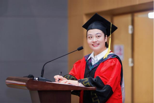 本科生毕业生代表陈希楠同学以一粒种子的成长为喻,分享了自己在大学四年的学习与成长经历,她动情地说:“我们就像一粒粒种子,在广医这片沃土中汲取养分,如今即将破土而出,去创造属于自己的精彩。”她感谢老师们的辛勤教导和同学们的陪伴支持,祝福同学们带着“破土”的勇气与信念,在未来的道路上绽放独特光芒。