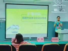 交流会在欧丽娅老师的开场发言中开始。欧丽娅老师跟大家分享了护理专业研究领域的新方向以及自己参加交流学习的经历和收获等,引导同学们学会熟悉陌生环境,积极参与学习交流活动,提升综合素质能力。