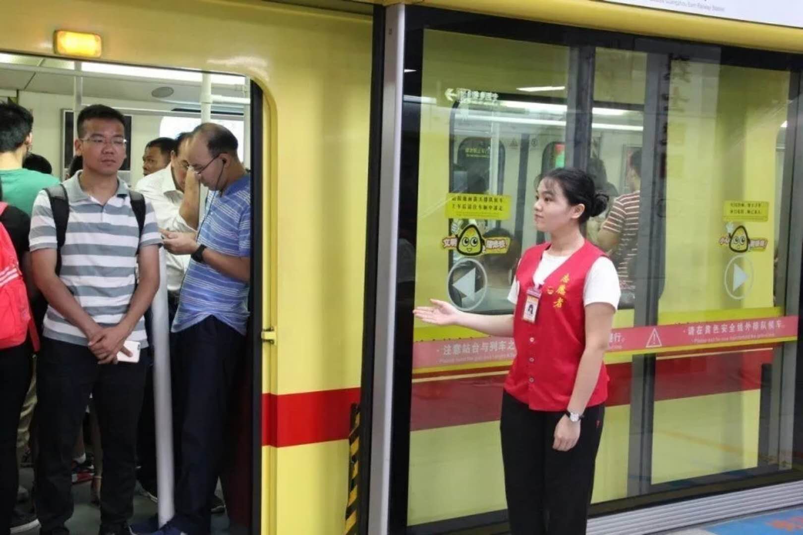 志愿者在“十一国庆”和“财富论坛”期间为广州地铁的辛勤付出,表示会定期为志愿者提供岗前的服务培训及志愿服务组织安排,不定期组织开展“最美志愿者评选”等交流活动,一起为广州市民的安全出行服务。