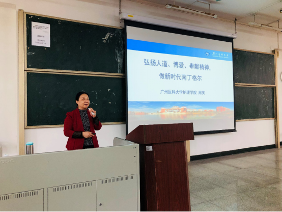 周英院长以“弘扬人道、博爱、奉献精神,做新时代南丁格尔”为题,为我校2020级本科护生讲授思政第一课。