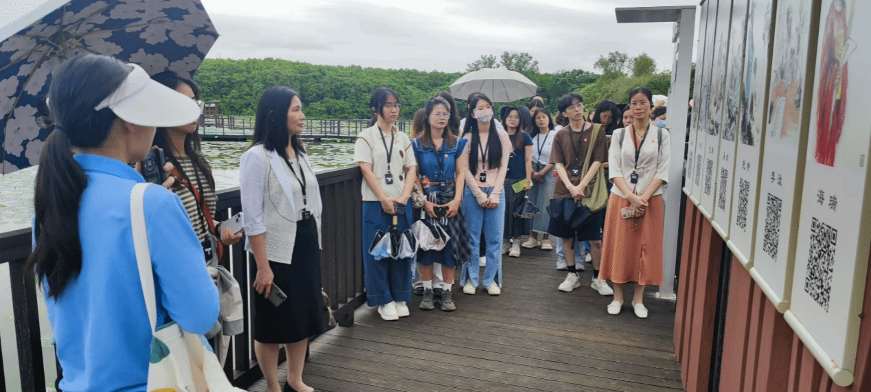 上午,全体师生党员及入党积极分子来到南沙湿地廉洁文化教育基地清莲湾开展党纪学习教育现场教学活动。在讲解员的引导下,大家漫步在廉洁文化思想理念与湿地自然景观融为一体的九曲荷花池,品读清官廉吏故事,赏析廉洁经典诗词。“予独爱莲之出淤泥而不染,濯清涟而不妖,中通外直,不蔓不枝……”,在活动现场,师生们共同吟诵廉洁经典古诗词《爱莲说》,深刻体会诗词中蕴含的廉洁文化思想内涵,让清廉之风润化心灵,筑牢崇廉向善的思想根基。