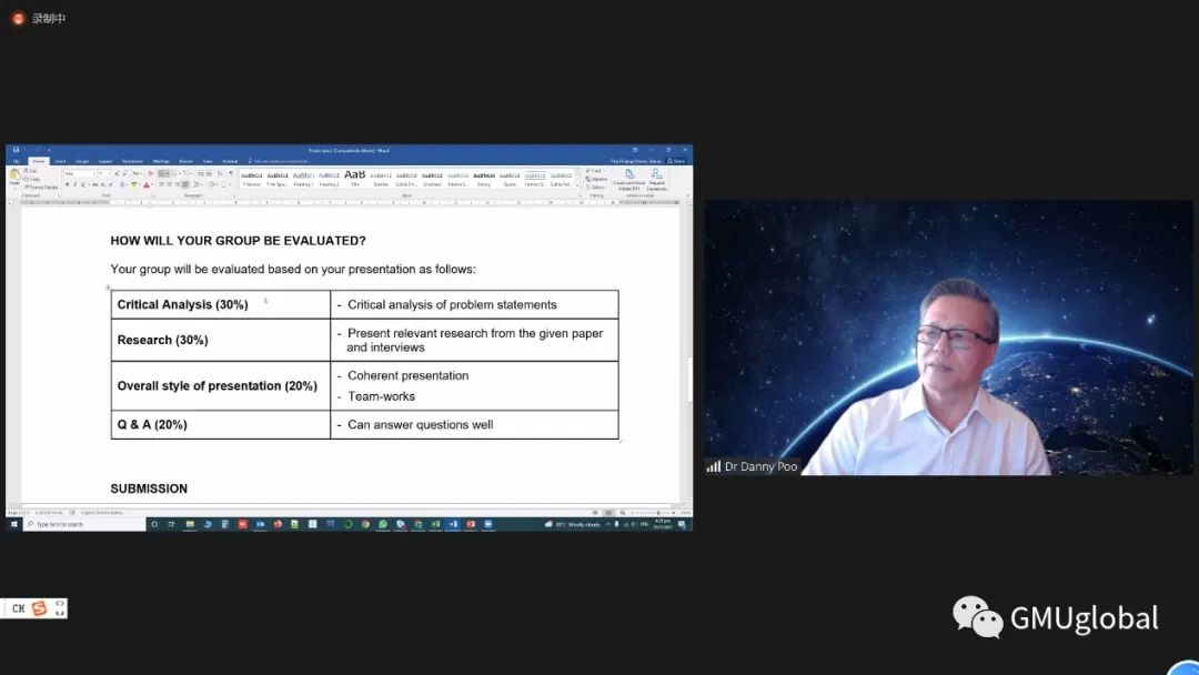 Dr. Danny Poo的课堂总是充满魅力的,即使彼此之间相隔着网络,他在课堂内依旧始终面带微笑,十分和蔼亲切;在讲到一些重点问题亦或是每节课后,他都会停下来,问我们对所讲内容是否有疑问;考虑到我们的英语水平,教授更是对我们颇为照顾,力求我们每个人都可以理解。他的讲课内容是幽默风趣、通俗易懂的,这种严谨认真又与时俱进的治学风格,正是我们现在所稀缺的优秀教师品质。严肃而又不失活跃的课堂总让人恋恋不舍,仿佛一眨眼的功夫便已经结束了。