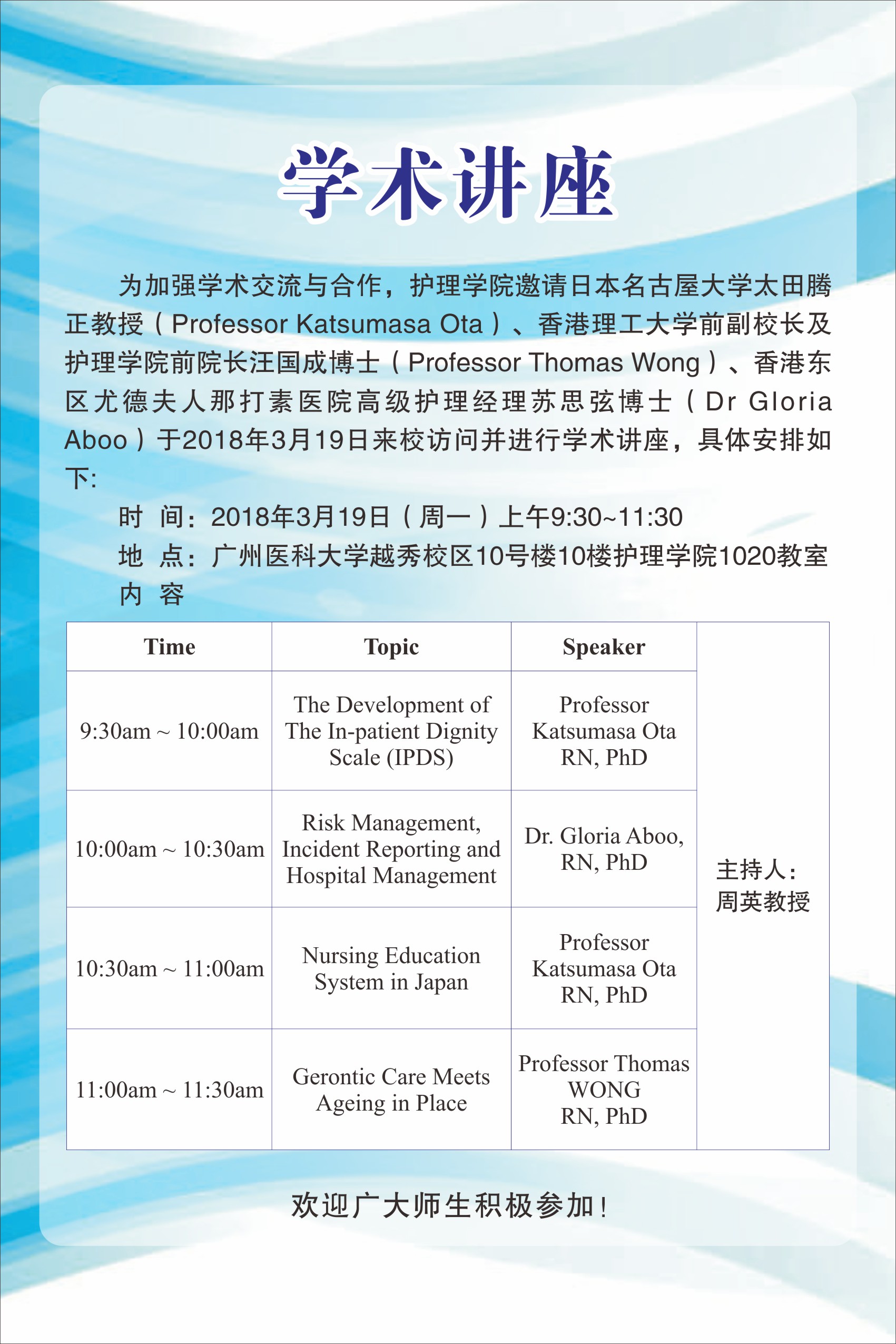 【讲座预告】护理学学术讲座