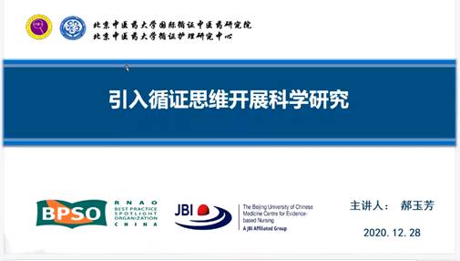 师生进行了题为《引入循证思维开展科学研究》的学术讲座。郝玉芳教授现任北京中医药大学国际循证中医药研究院副院长,北京中医药大学循证护理研究中心主任,主持和参与各级课题80余项,公开发表学术论文160余篇(其中SCI文章8篇),参加了全国17本统编教材的编写(其中主编8本);北京市高等学校优秀青年骨干教师、校级教学名师。在学堂在线主讲的《循证护理学》获国家双一流在线课程。