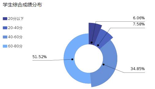(2)学生学习任务完成度高,能按照学习指引按时,观看课前导学,完成预习测试,学习课件视频,阅读拓展资源,积极参与讨论答疑,并及时提交章节测试。学生综合测评成绩较好,绝大部分同学成绩在60-80分区间。