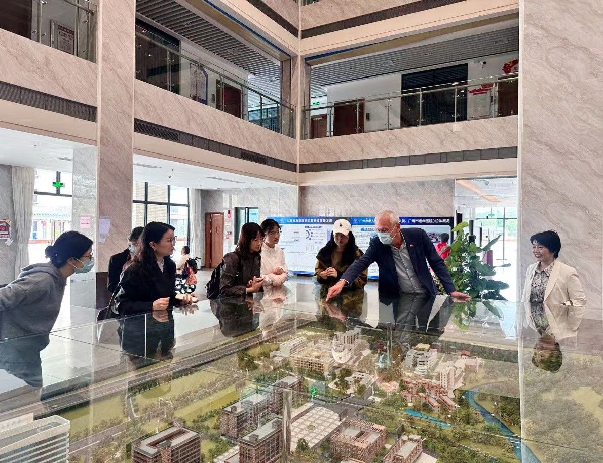 老年医学研究所)进行交流。Achterberg教授在参观该院失智老人照顾中心及多功能康复区时,对中心在老年照护计划、失智症照护体系、感官刺激与怀旧治疗、智能训练室建设等方面的做法与成效表示高度赞赏。参观与交流期间,双方围绕老年照护医学人才培养、长期照护模式与科技创新、失智症患者综合照护路径等议题展开了深入交流,在加强失智症康复、推动老年人健康福祉与生活质量的持续提升等方面达成共识。