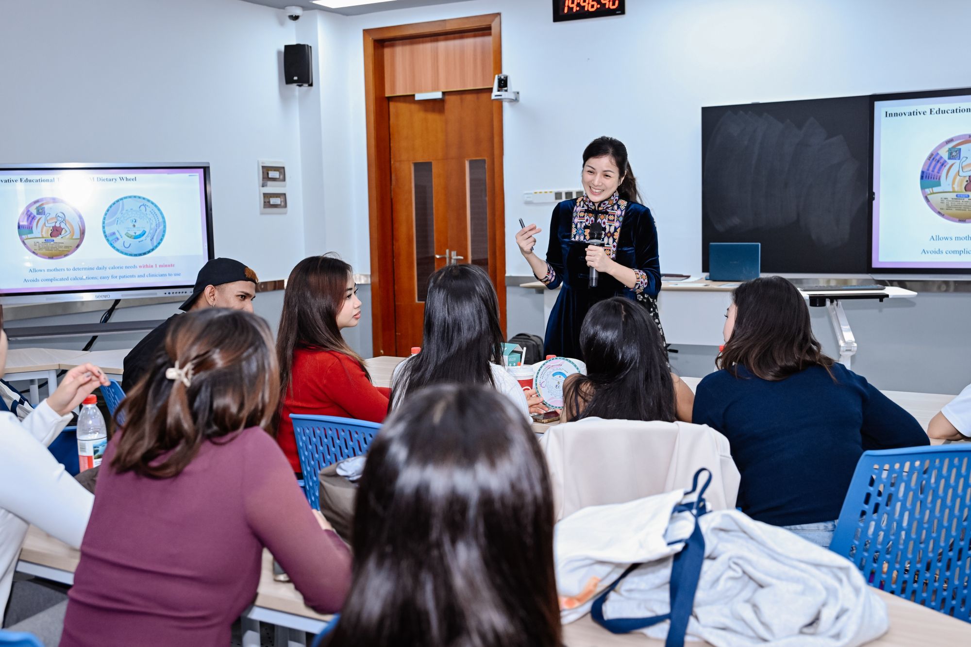 附属第三医院夏振兰老师以“一例青年失禁患者的整合护理实践”为题,分享了专科护理中的典型个案与人文关怀;吴伟珍老师则围绕“基于电子健康应用的妊娠期糖尿病管理”,系统阐释了数字化工具在临床照护中的落地路径与成效,生动呈现科技赋能护理的专业前沿。案例分享结束后,各小组围绕“整合照护的机遇与挑战”展开热烈研讨,同学们结合所学理论与案例中的实践经验,各抒己见、深入交流,在思维的碰撞中进一步深化了对整合照护理念的理解,实现了理论与实践的深度融合。