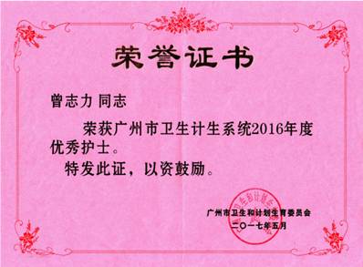 摹然间回首,吾已在血透护理的路上坚行十载。十年间,获得省、市级创新类奖项21项,先后被评为广州市优秀护士、广州市青年岗位能手、护理创新发明者”、广东省护理学会“优秀创新先进个人”、广东省“十佳护理创新发明者”等称号。