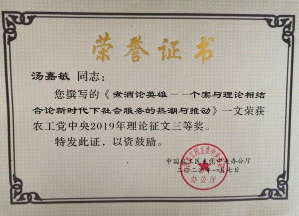 “敦兮其若朴,旷兮其若谷”。十年护理临床路,同时也是科研深耕路。主要研究领域:慢性肾脏病护理,腹膜透析相关并发症护理等。主持省市区级课题6项,发表论文30余篇,其中第一作者11篇。获国家实用新型专利3项。科技项目“老年高血压患者的健康概念、健康行为、自我效能和健康行为的系列研究”获得中华护理学会科技奖三等奖;论文“煮酒论英雄——个案与理论相结合论新时代下社会服务的热潮与推动”获得中国农工民主党中央理论研究论文三等奖;个人先后荣获“花都区优秀护士”“广州市优秀护士”“花都区优秀护理管理者”“广州市农工党理论先进个人”等称号。