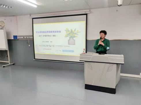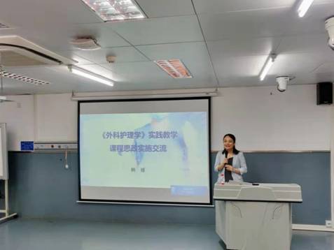 护理人文教研室李桃副教授、外科护理学教研室韩媛副教授、内科护理学教研室马春花教授分别做了课程思政经验交流分享。李桃副教授结合《护理学导论》的课程建设及参加我校课程思政教学竞赛的经历,分享了个人对思政课程建设的体会;韩媛副教授以《外科护理学》为例,分享了自己在实践教学讲授过程中,以博古通今的方式向学生传达思政的观点的经历;马春花教授则以《内科护理学》中高血压的理论课讲授为例,分享了课程思政的经验。