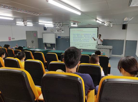 教师讲解课程思政的内涵,在“打造一流课程思政”的内容中,龚超教授更是从教学过程出发,以课程设计、课程内容、课程讲授、课程考核、课程评价五大环节,阐述如何有效将思政元素贯彻始终,学院教师认真学习,记录笔记,纷纷表示很受启发,获益良多。