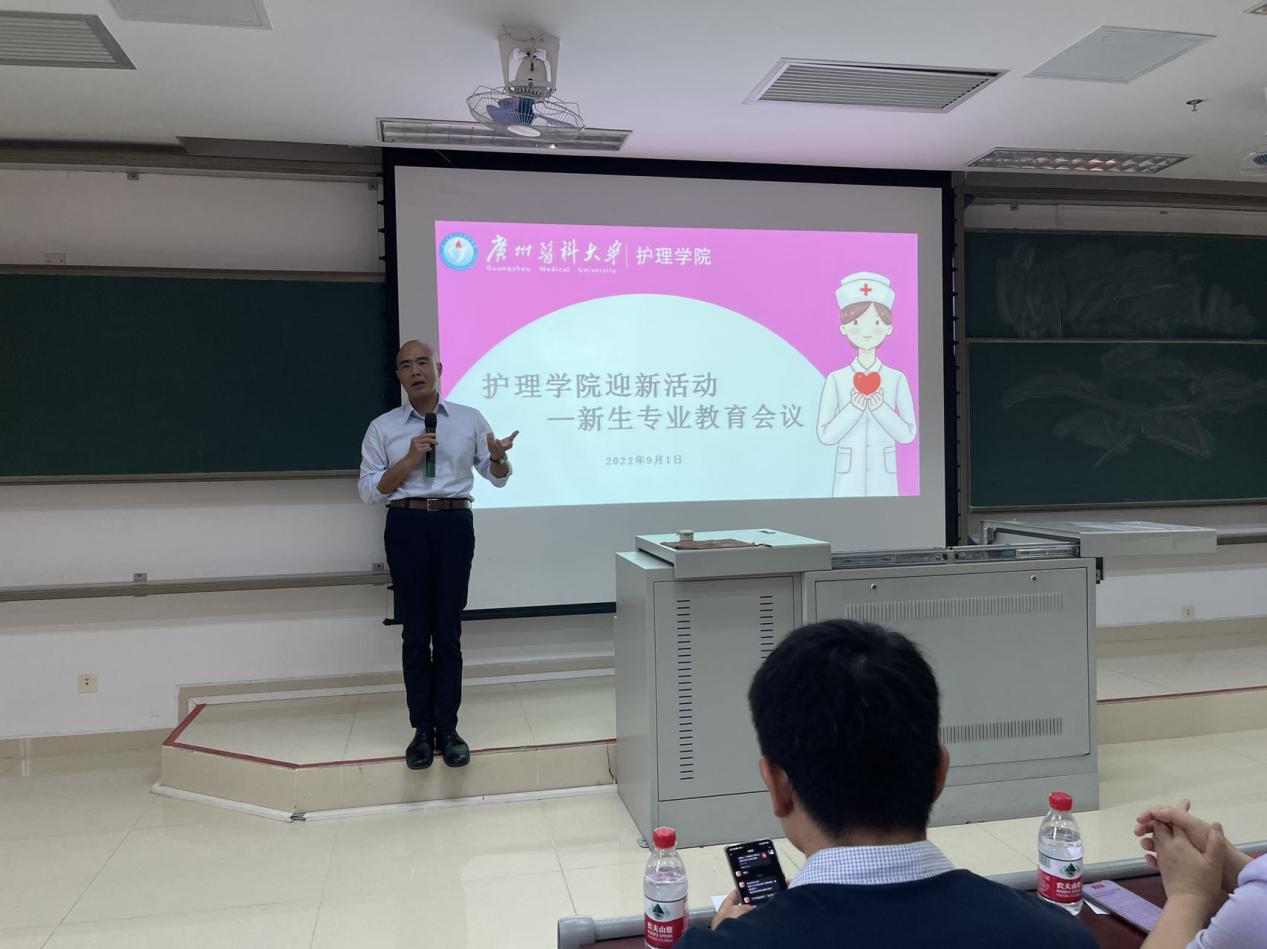 在番禺校区A3-224教室举办了2022级新生专业教育会议。学院领导雷丽琼书记、徐学虎副院长、黄美凌副院长、办公室叶盛主任、教研办韩媛主任、学生办黎泽华老师、2022级护理专业兼职班主任及2022级护理学专业全体同学参加了本次活动。