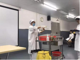 基础护理技能每组三人,比赛项目为穿脱隔离衣、无菌操作和吸氧操作;临床护理技能每组四人,比赛项目为临床案例分析,通过分析案例决定应采取的护理措施,考察护理技能操作的专业性和规范性,以及小组内的分工合作和默契度。