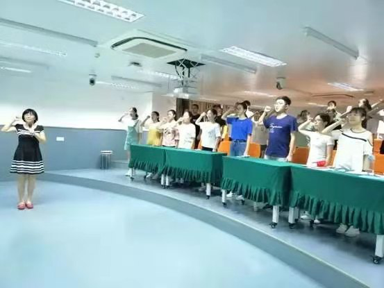胡敏同志组织大家奏唱国歌,之后全体合唱歌曲“我和我的祖国”。然后由欧丽娅同志领誓,参加活动的全体同志面对鲜艳的党旗,举起右手,重温入党誓词,“我志愿加入中国共产党,拥护党的纲领,遵守党的章程,履行党员义务,执行党的决定,严守党的纪律,保守党的秘密,对党忠诚,积极工作,为共产主义奋斗终生,随时准备为党和人民牺牲一切,永不叛党。”的声音铿锵有力,久久回荡。