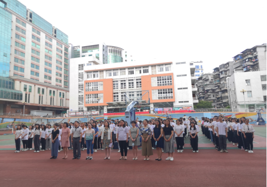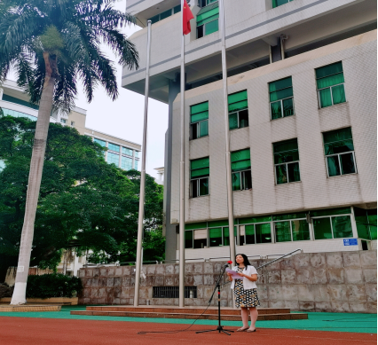 越秀校区全体同学参加了升旗仪式。学生办欧丽娅主任主持升旗仪式。