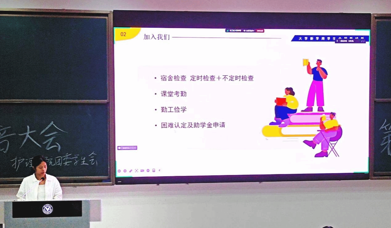 学生会副主席张晶介绍了学生会的概况,强调了“团结进取、勇于创新、服务同学”的宗旨,提出“坚持深化学生会内部改革,创新协调部门工作,提高同学们的工作能力及综合素质”的目标,还着重强调了今后工作中的注意事项,希望大家明确工作方向,同心同向地一起做好学生会的工作。