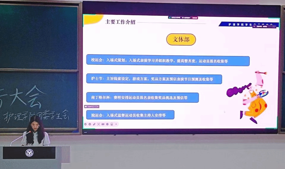 文体部部长黄嘉馨作工作汇报