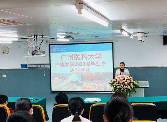 典礼在庄严的国歌声中拉开了序幕。首先,周英院长代表学院领导和全体教职员工致辞。她回忆了2020届毕业生在校期间的点点滴滴,尤其表扬了在新冠肺炎疫情期间多名毕业班同学义不容辞地投身