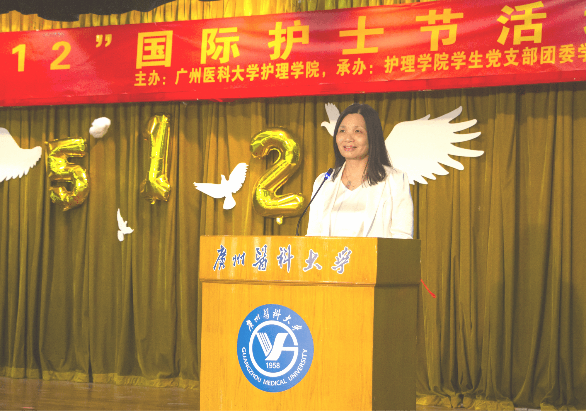 优秀教师代表罗艳华教授围绕今年国际护士节的主题“我们的护士•我们的未来•护理的经济效力”和我国护士节的主题“发展护士队伍,优化护理服务”进行了阐释;以自己从教20年经历激励大家传承好南丁格尔精神,以“感谢、感恩、继承、传承”来与大家共勉,并表示老师们要用勤劳的双手,把满腔的激情奉献给护理教育事业,把爱心播散到每一位同学心里,在平凡的岗位上成就不平凡的业绩。