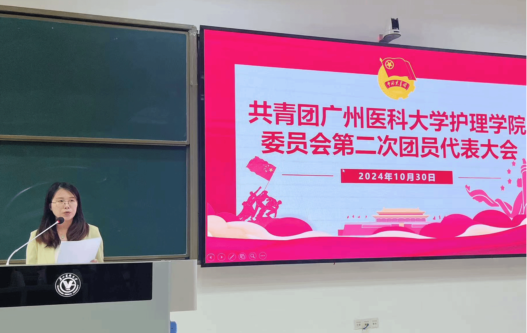 党总支唐敏仪副书记致辞,她指出大会在学校和学院推进高质量发展的关键期举行,承载着广大团员青年的期望与使命。回顾过去,学院团委工作取得较好成绩。展望未来,学院团委要以团代会为契机,坚持党的领导,开创工作新局面。