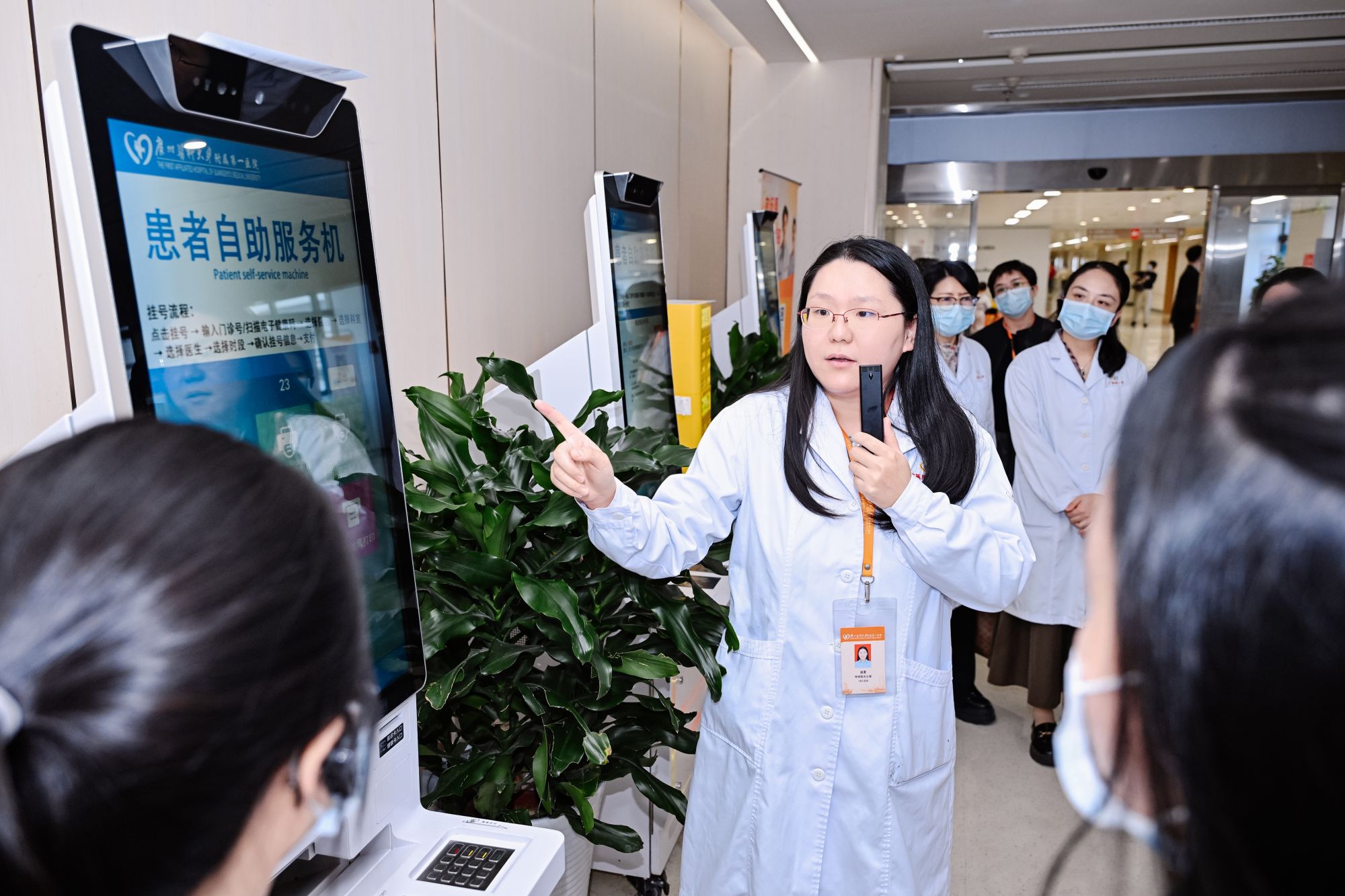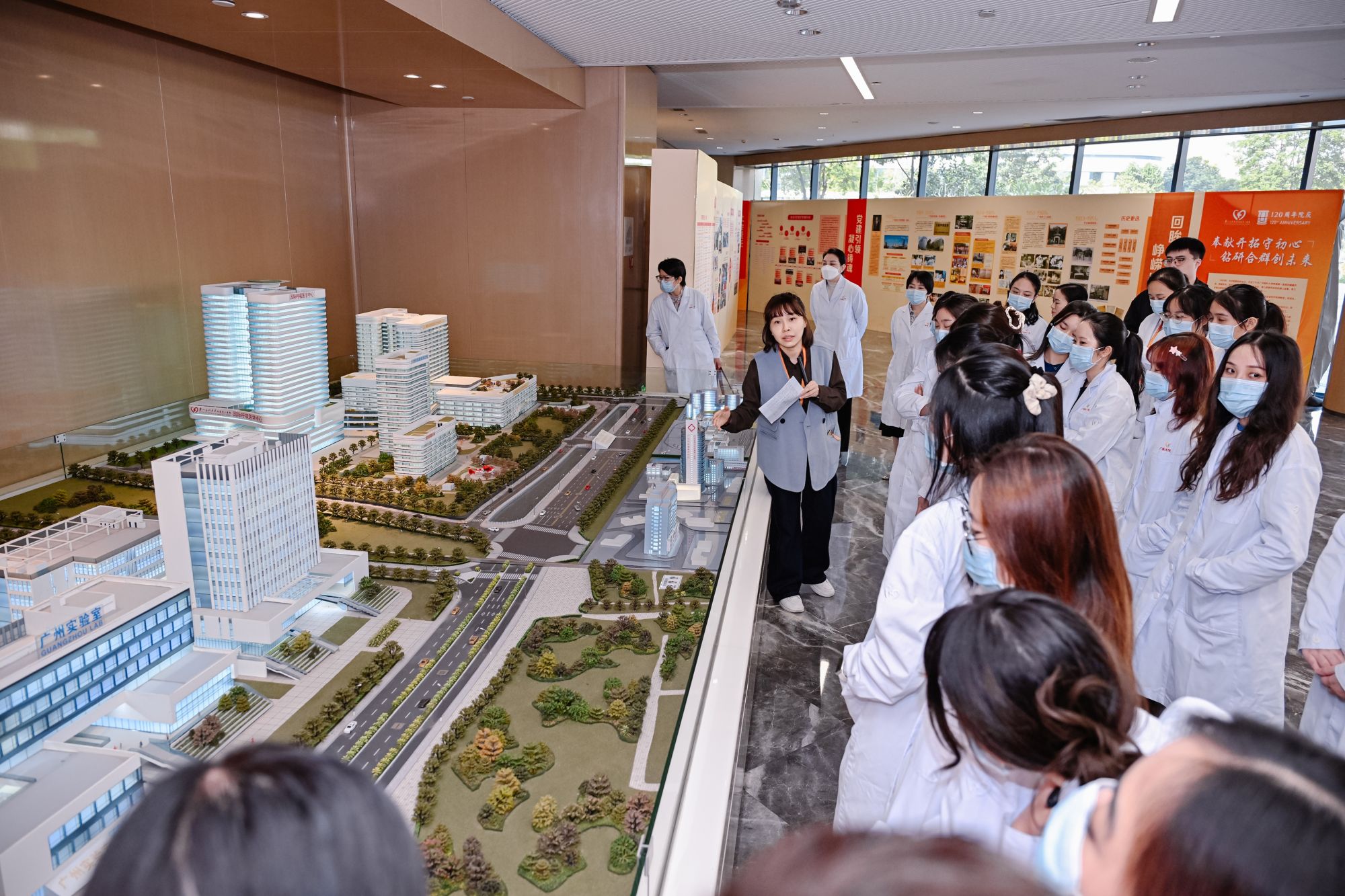 代表团一行参观了医院沙盘模型和荣誉墙、国家呼吸医学大数据中心及智能化门诊,并分组进入心内科、呼吸内科病房,与临床一线医护人员进行交流。呼吸内科曾秋璇科护士长介绍的“口琴呼吸康复法”等本土化护理创新,引起了新方师生的浓厚兴趣。
