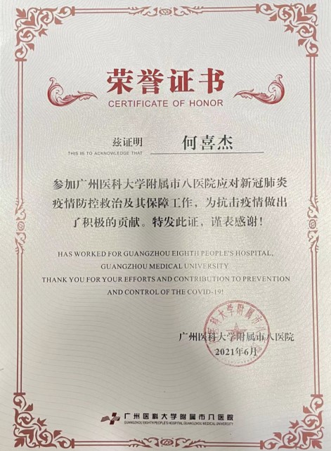 何喜杰作为一名正式党员,勇于担当,2020年及2021年期间两次支援p站视频