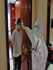 我正式成为医学观察区的驻点护士,带着兴奋激动的心情加入到日常的工作中。每天的工作看似简单,但却很琐碎。常规对防护物资进行每日清点,做好登记、上报。最重要的便是监测密切接触者的体温以及做好流行病学调查,关注他们的心理状态。在创建密切接触者隔离酒店初期,医护人员充当着全能“管家”的角色。刚到达新环境的密接者们,多数都会有比较大的情绪反应,对酒店环境、餐食都有比较大的意见。我们在安排及宣教好新入的密切接触者后,迅速在微信群内收集好意见,我们一边做好解释和安排工作,一边及时反映至酒店,落实好酒店服务,以及多次向商家反映餐食的改善建议,同时做好密接者们的安抚工作,增加巡视次数和交流次数。在各单位的支持工作下,我们改善了餐食,解决了酒店入住问题,更重要做好日常的医学 观察工作,此后更好更顺利地与密接者的相处,及时解决矛盾,安抚了他们的情绪。我曾经接待了一位抑郁症的客人,他到酒店后第一时间在微信群里表达了对新冠的恐惧,以及对家人的担心。由于该客人并未对抑郁症用药,于是我增加查房次数以及主动加了该客人的微信,承担起沟通缓解情绪的责任。在多次沟通后,他对新冠病毒有了一定的认识,终于能放松一些心情,后来正常地离开酒店,还给我们工作人员写了感谢信。